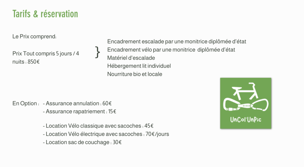- Organisation d’un voyage vélo + escalade