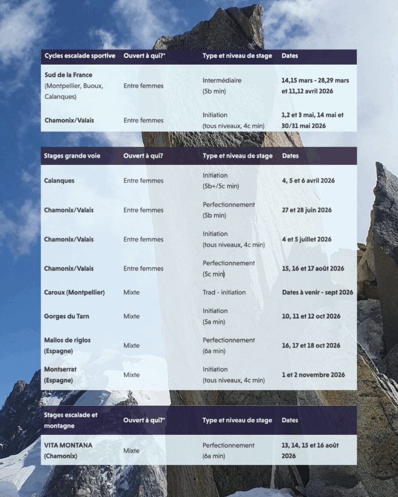 Voici tous les stages auxquels tu peux désormais t’inscrire pour cette année :